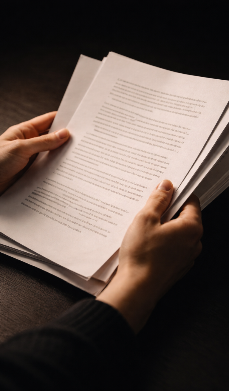 Du bekommst eine fundierte, verlässliche Rückmeldung zu Struktur, Stil, Logik und Wirkung, und bist während des gesamten Lektorats gut begleitet.